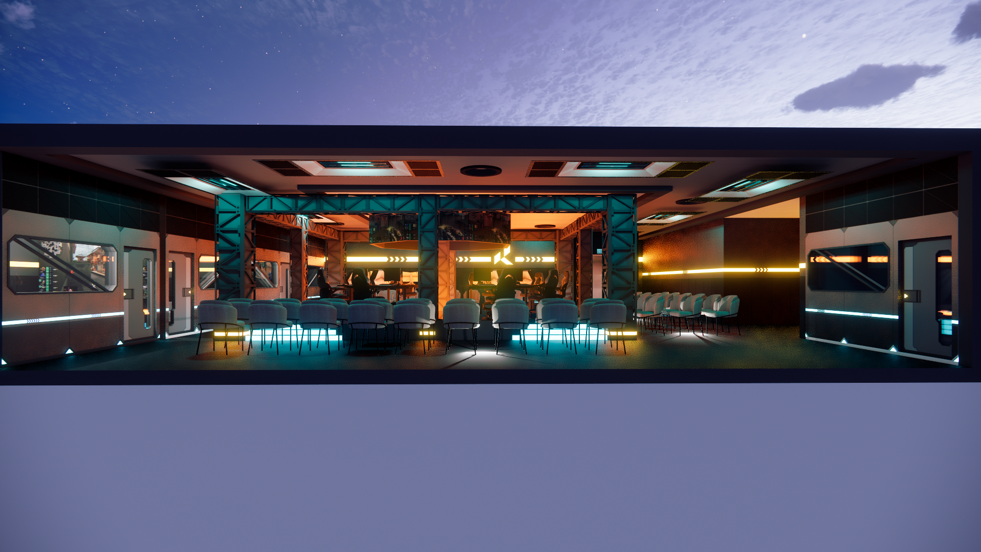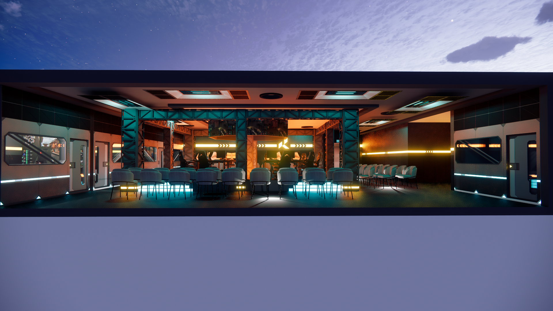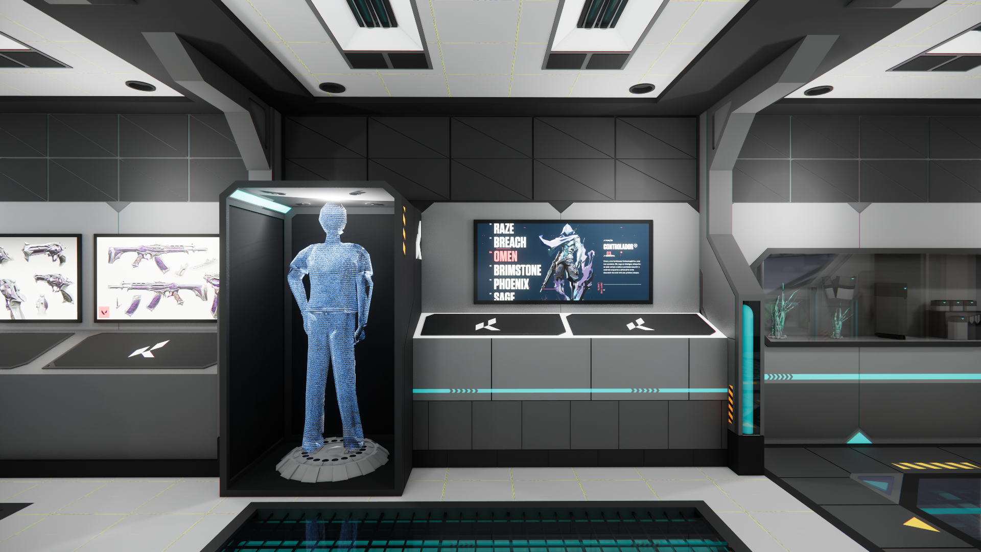 The design concept is inspired by Valorant game story where thinking of the design style as the parallel world that is modern and attractive. The design is similar to a research center.